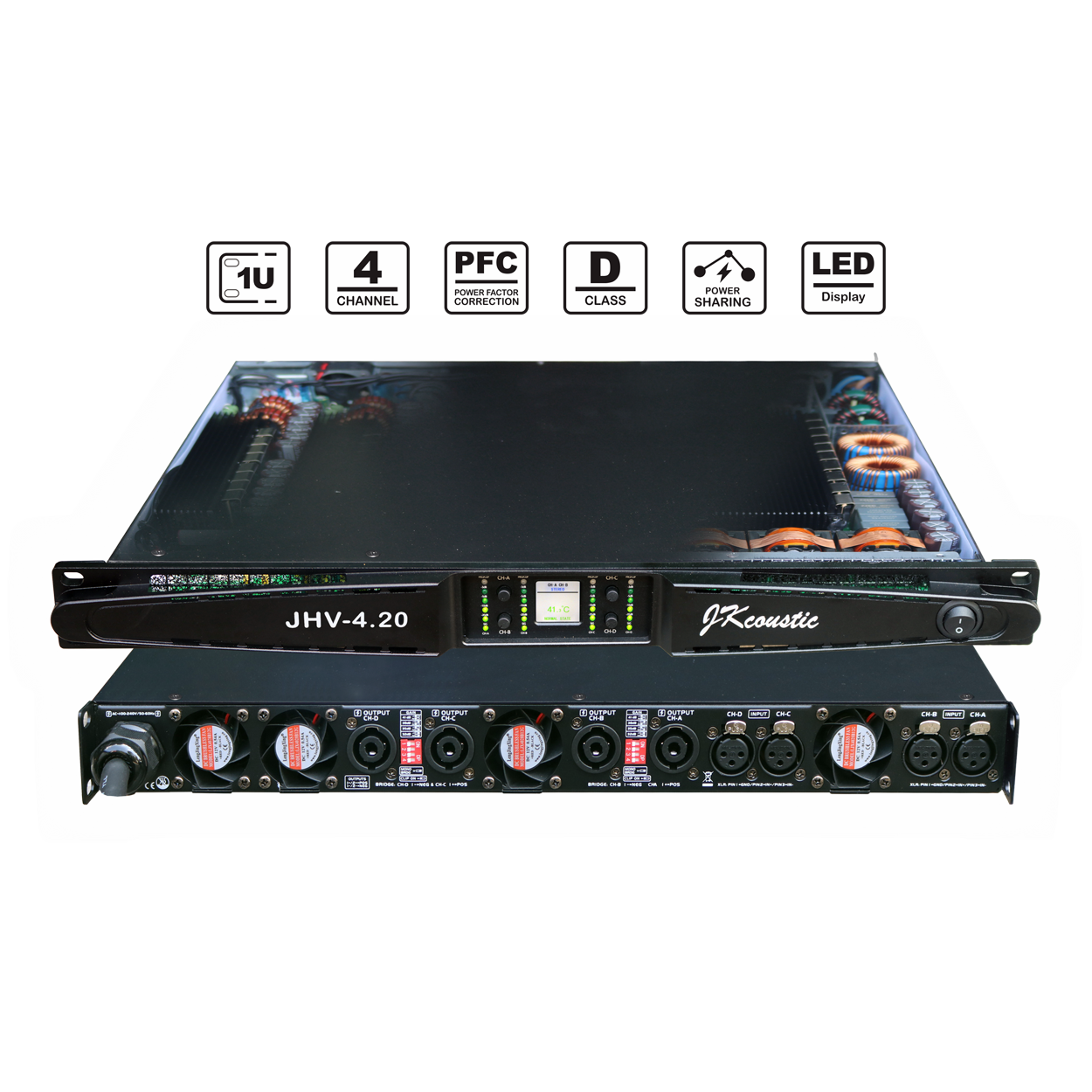 - Stereo Power 8 Ω : 4 x 2.000 Watt